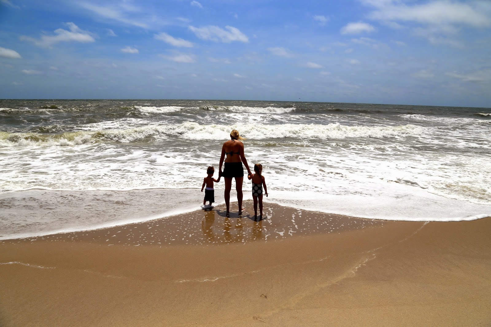 We weren't entirely sure what kind of day (or week) we were in store for, after the periods of torrential rain our first afternoon in Kure Beach. We were so exhausted from driving the last few days that we all slept in. But as we woke, we were pretty sure there was sunlight streaming in through the blinds. Instinctively, I grabbed my phone to check the weather before looking out the windows for myself. Our week of clouds and rain, had turned into sunny forecasts and mid-80s! We ate a quick breakfast and walked across the street to the beach.